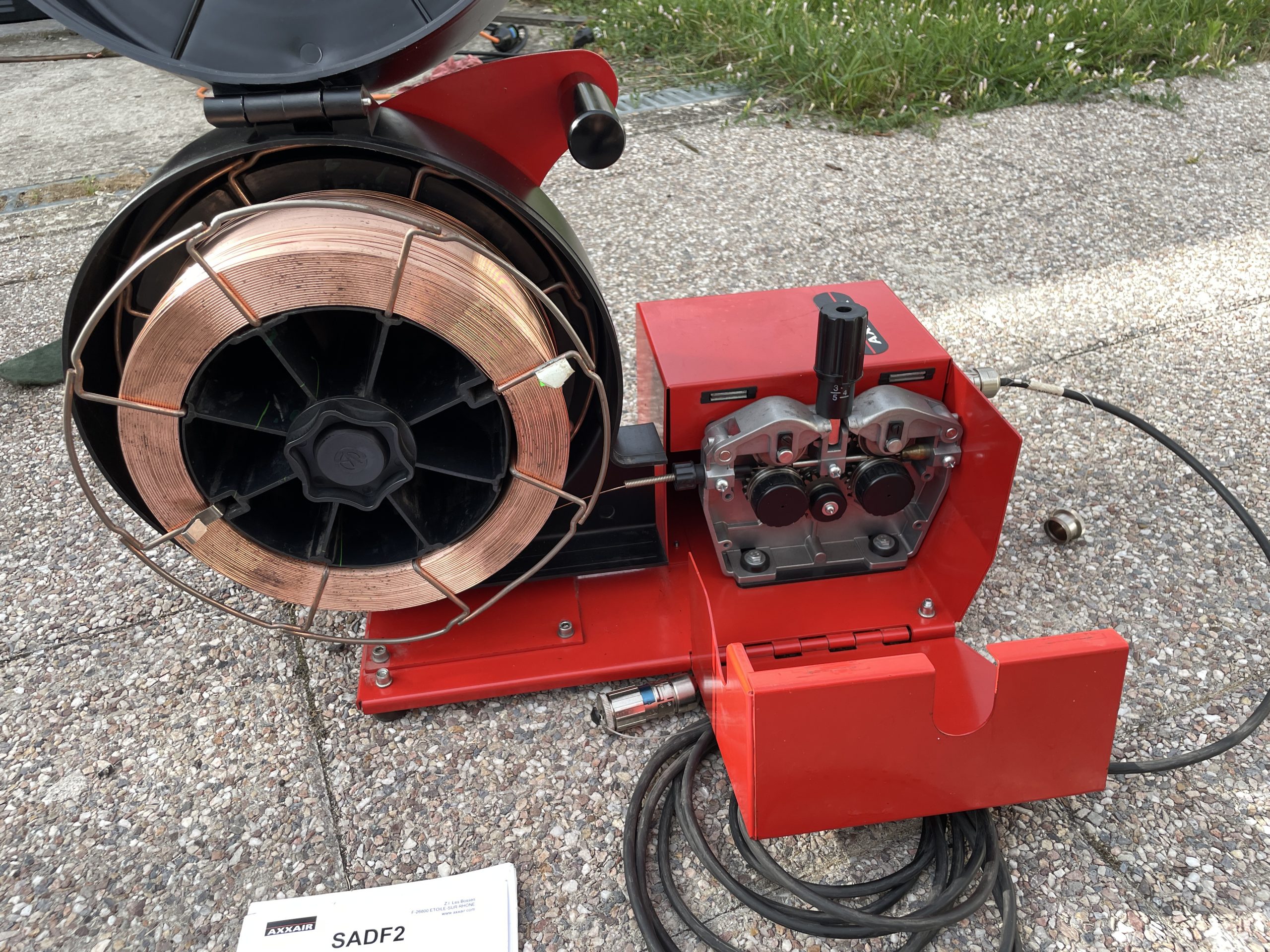 3) . SADF2 N° 0025 dévidoir : Le dévidoir de fil d’apport à distance Axxair SADF2 est conçu pour fonctionner avec les têtes de soudage de la série SATO, les unités de soudage orbitales stationnaires de la série SP et les sources d’alimentation de soudage des séries SASL-160TF, SASL-200TF et SASL-300TF. ——–>vendue